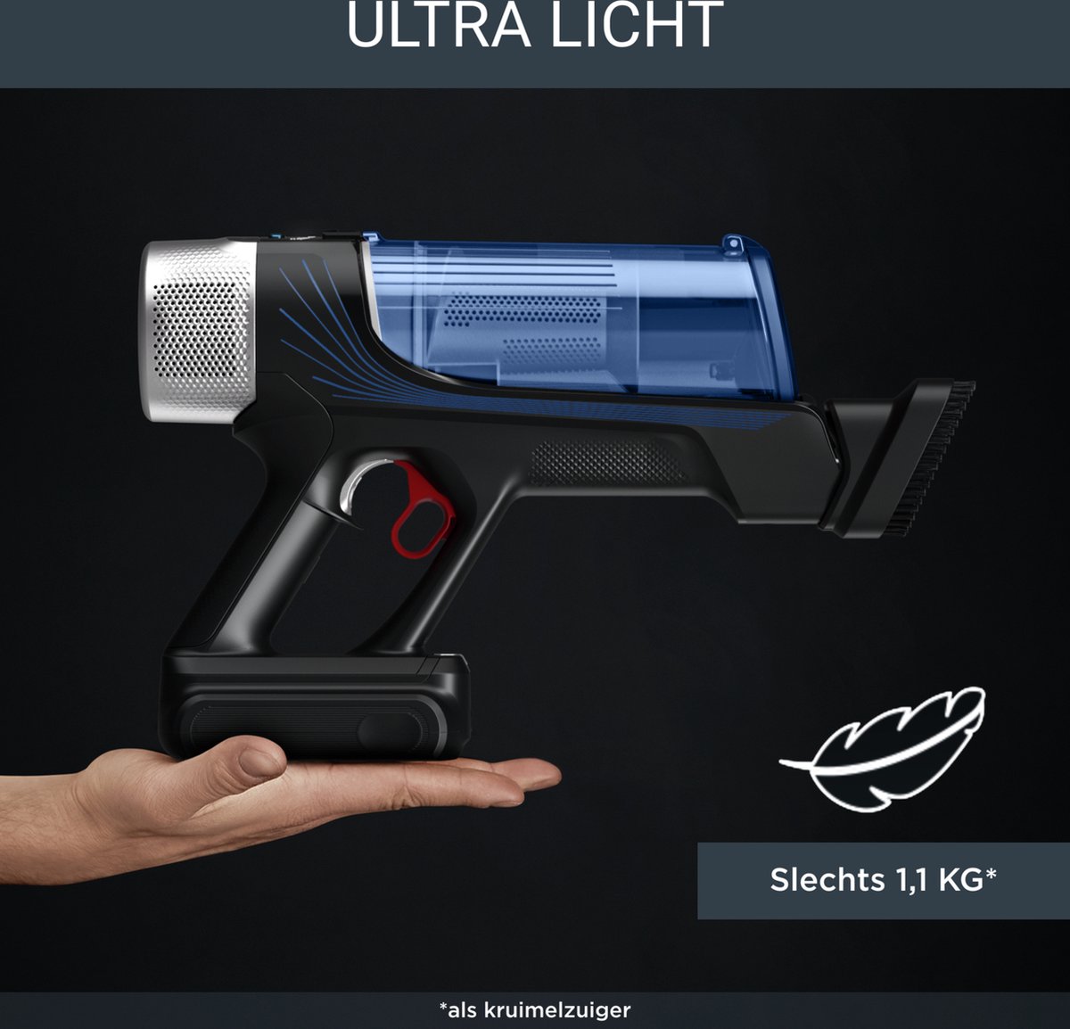 - Til minder gewicht, dankzij kruimelzuiger van slechts 1,1 kg.