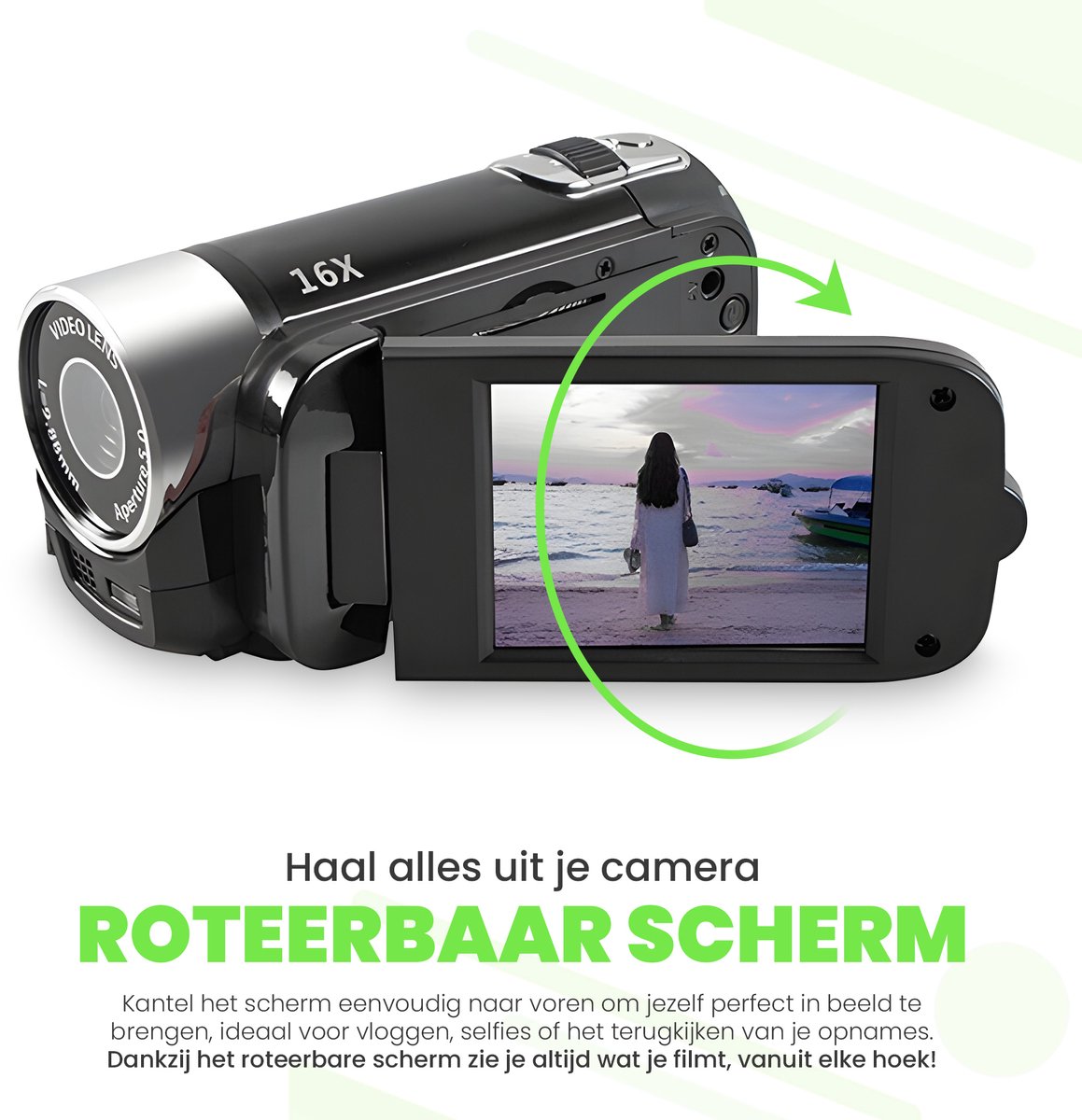 2,4 inch draaibaar LCD-scherm — flexibel kadreren