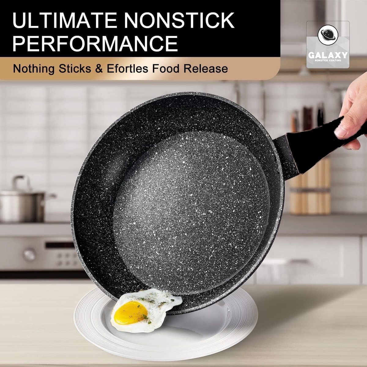 De binnenlaag is omschreven als een marmeren coating met een antiaanbakfunctie. Dat betekent dat je doorgaans weinig tot geen olie hoeft te gebruiken om te bakken, wat het koken gezonder maakt. In de praktijk scheelt dit bij pannenkoeken, eieren en dunne visfilets: je hebt veel minder aanbak en minder schoonmaakwerk.