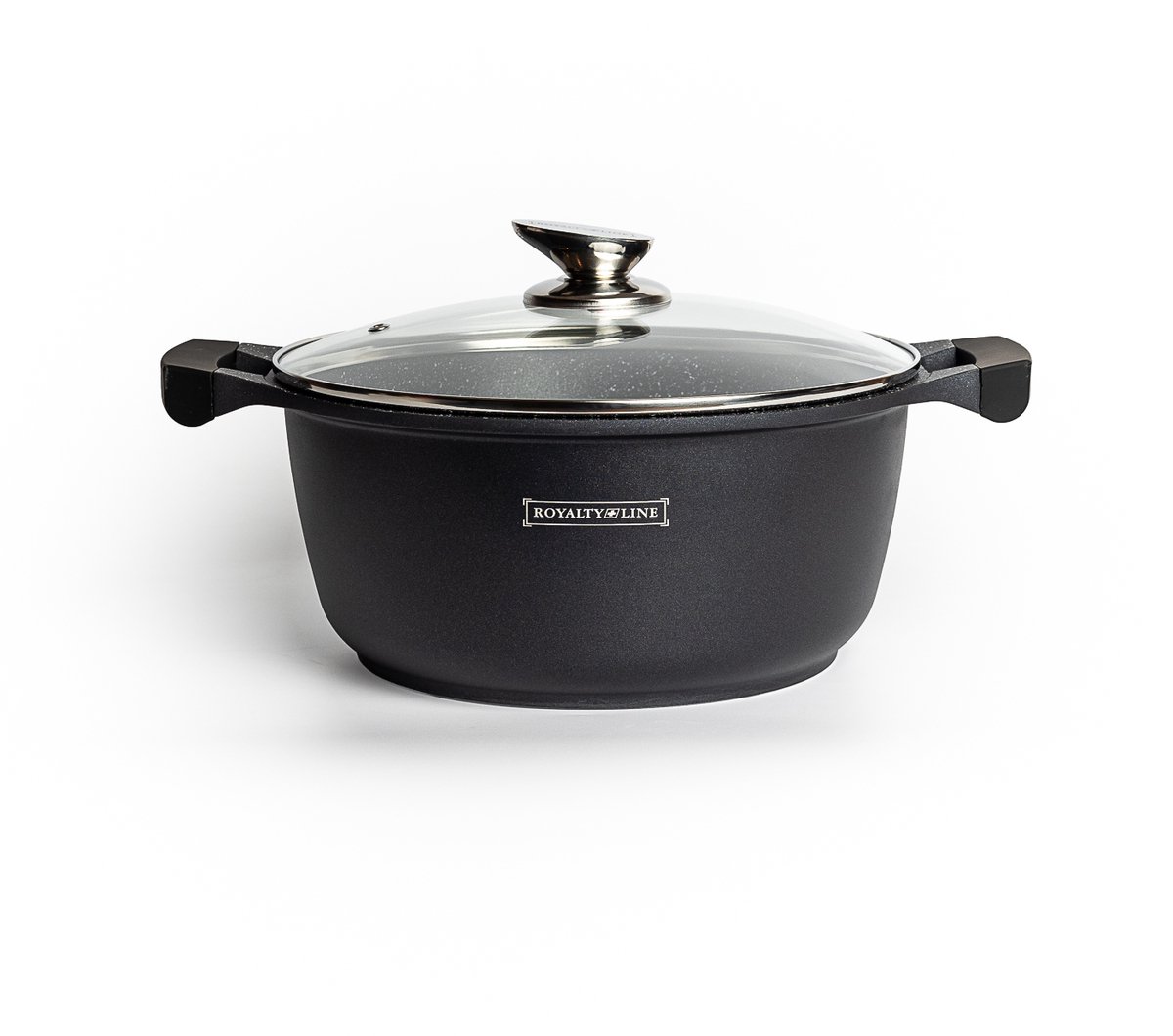 De Royalty Line pannenset BS1010 Series is een complete 13-delige set met koekenpannen, braadpannen, steelpan en keukengerei, bedoeld als een allround basis voor dagelijks koken. De set combineert een gegoten aluminium behuizing met een meerlaagse antiaanbaklaag en glazen deksels, en is geschikt voor alle warmtebronnen, inclusief inductie.
