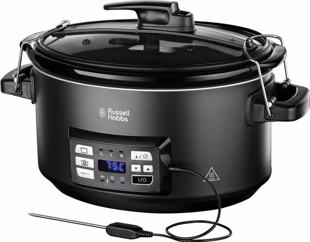 Mooie grote slowcooker met veel extra mogelijkheden. Slow-cooking, Sous-vide garen en groot vlees bereiden met de kernthermometer, het kan allemmaal.
