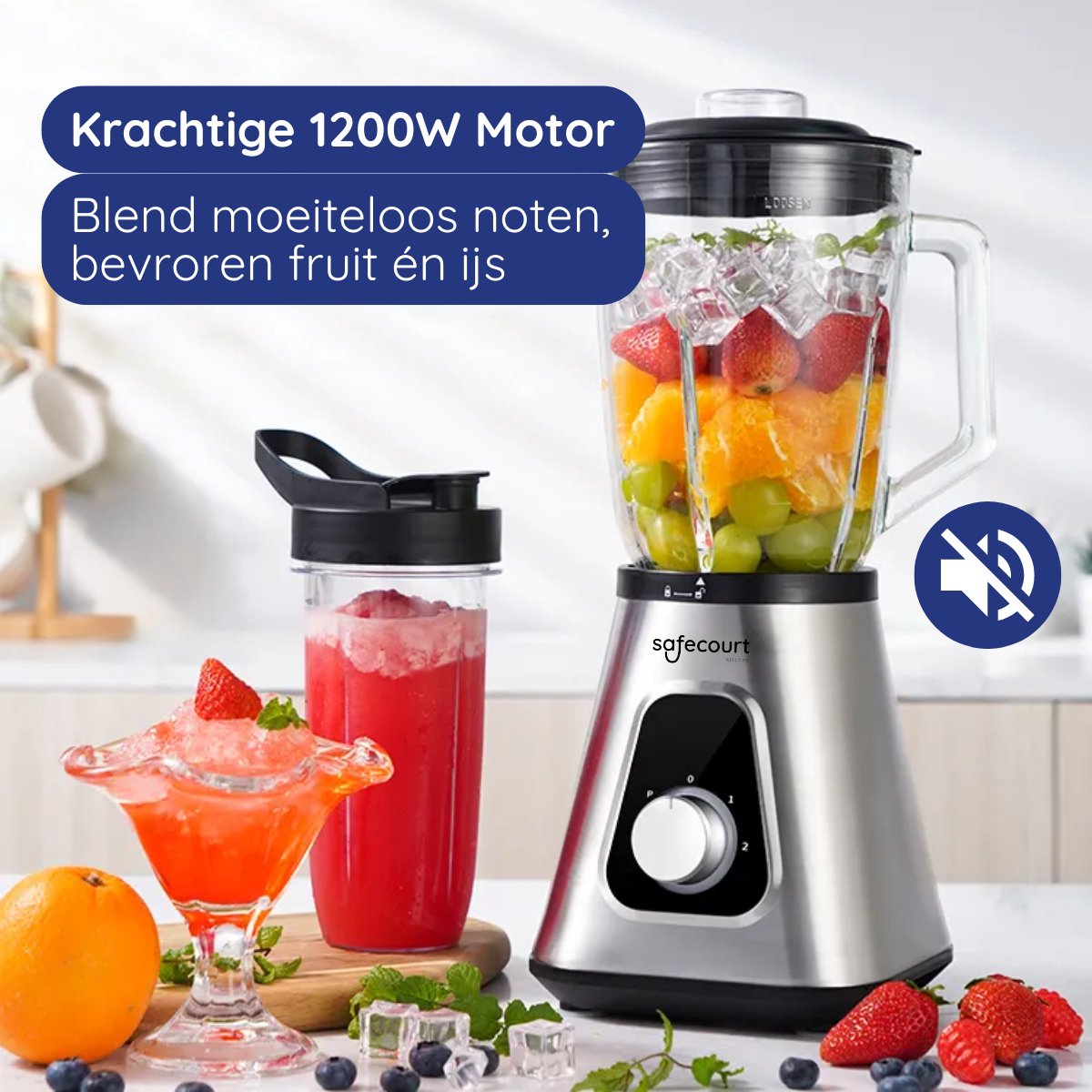 Overzicht:Een krachtige blender voor Nederlandse huishoudens die gemak en duurzame materialen waarderen. De Safecourt Blender combineert een 1200 W motor met een robuuste 1,5 liter glazen kan en BPA‑vrije sportbeker. Zo mix je dagelijks moeiteloos smoothies, soepen en ijs, en maak je alles snel schoon.