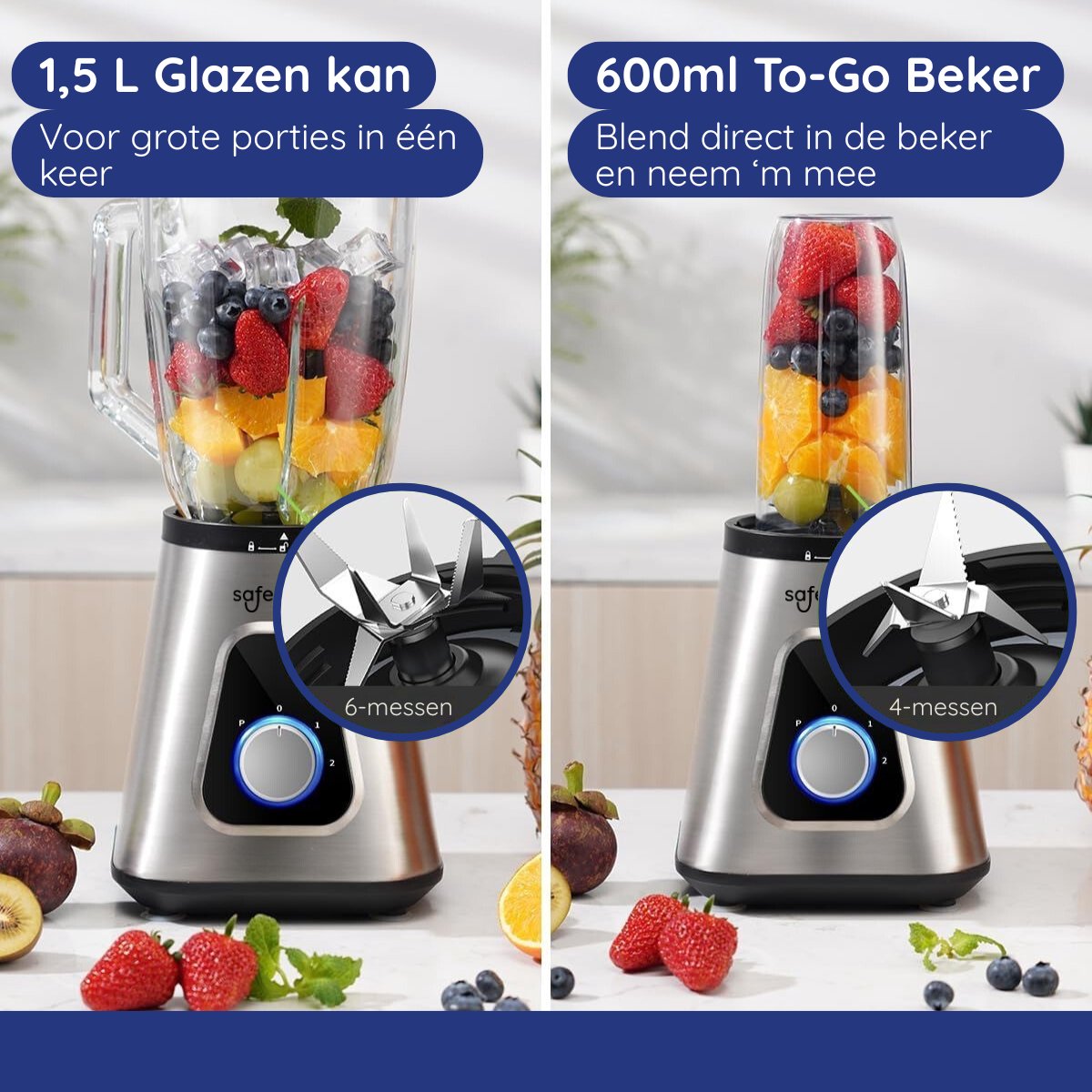 Zoek je een betrouwbare, krachtige blender die zowel een grote glazen kan als een handige meeneembeker biedt, en wil je zonder veel onderhoud kunnen blenden? Dan is de Safecourt Blender een zeer complete keuze. De combinatie van 1200 watt vermogen, afneembare messenset en beveiligingen maakt hem geschikt voor intensief, dagelijks gebruik, terwijl de prijs-kwaliteitverhouding in deze klasse aantrekkelijk is.