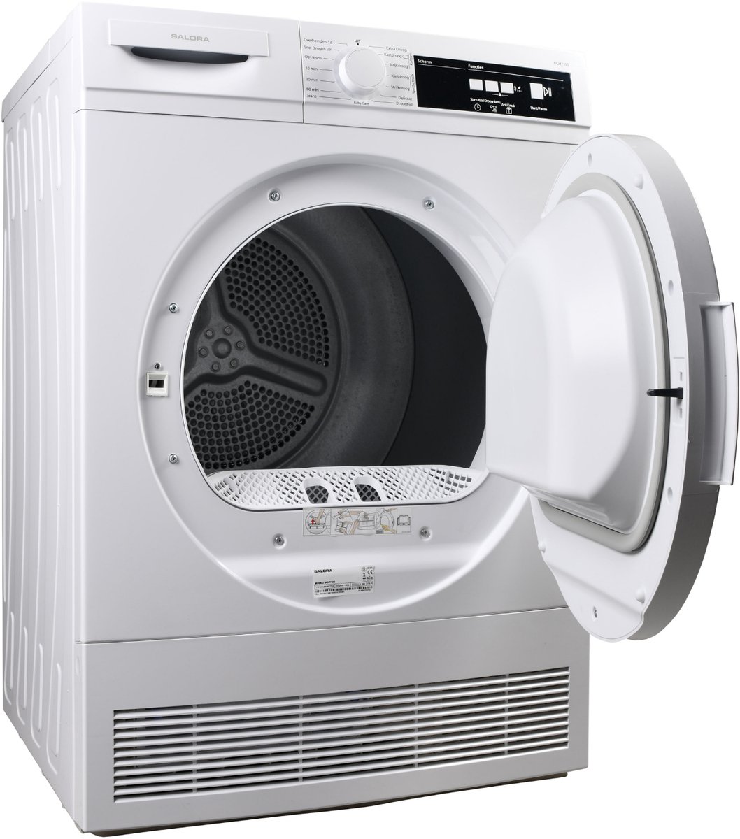 Dit is mijn eerste ervaring met een condensdroger; hiervoor had ik altijd een droger met een slang naar buiten. Op basis van prijs en reviews heb ik voor deze Salora gekozen. Uiteindelijk moet je zo’n apparaat zelf ervaren, maar tot nu toe ben ik erg tevreden. Het is een fijne condensdroger die snel droogt. Hij “ziet” wanneer de was droog is en past het programma daarop aan, waardoor de draaitijd korter wordt. Het eindsignaal is instelbaar en de resttijdindicatie is handig. Er zit ook verlichting in de droger. Ik gebruik meestal hetzelfde programma; de andere heb ik nog niet geprobeerd. Enig nadeel: de kamer wordt erg warm tijdens het draaien—waarschijnlijk normaal bij condensdrogers, ik had hier nog geen ervaring mee. Verder is hij vrij stil, wat prettig is. Ik zou deze Salora zeker aanraden. De levering was snel en ik werd keurig op de hoogte gehouden van de status van de bestelling en levering.