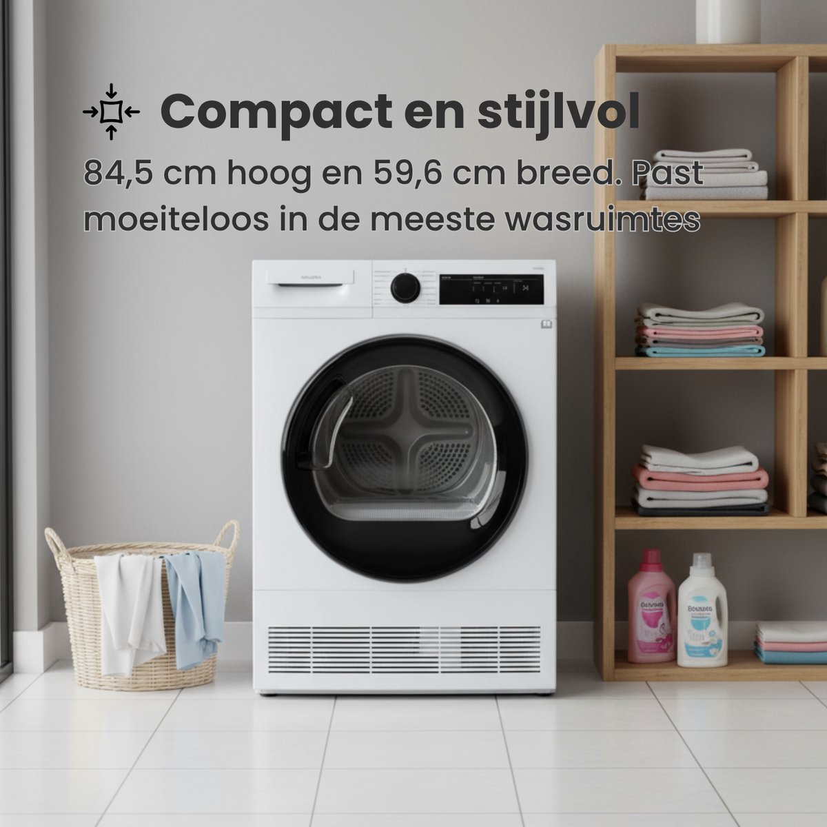 - Ruimte-effect: als condensdroger heeft de DRYER75B geen luchtafvoerslang naar buiten nodig. Dat biedt flexibiliteit in de plaatsing—handig in appartementen of bijgebouwen. Houd wel rekening met voldoende ventilatie in de ruimte, want een condensdroger geeft enige warmte af.