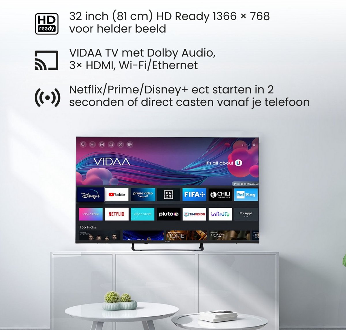 Smart-platform VIDAA (bron: listing, gecontroleerd 2025)