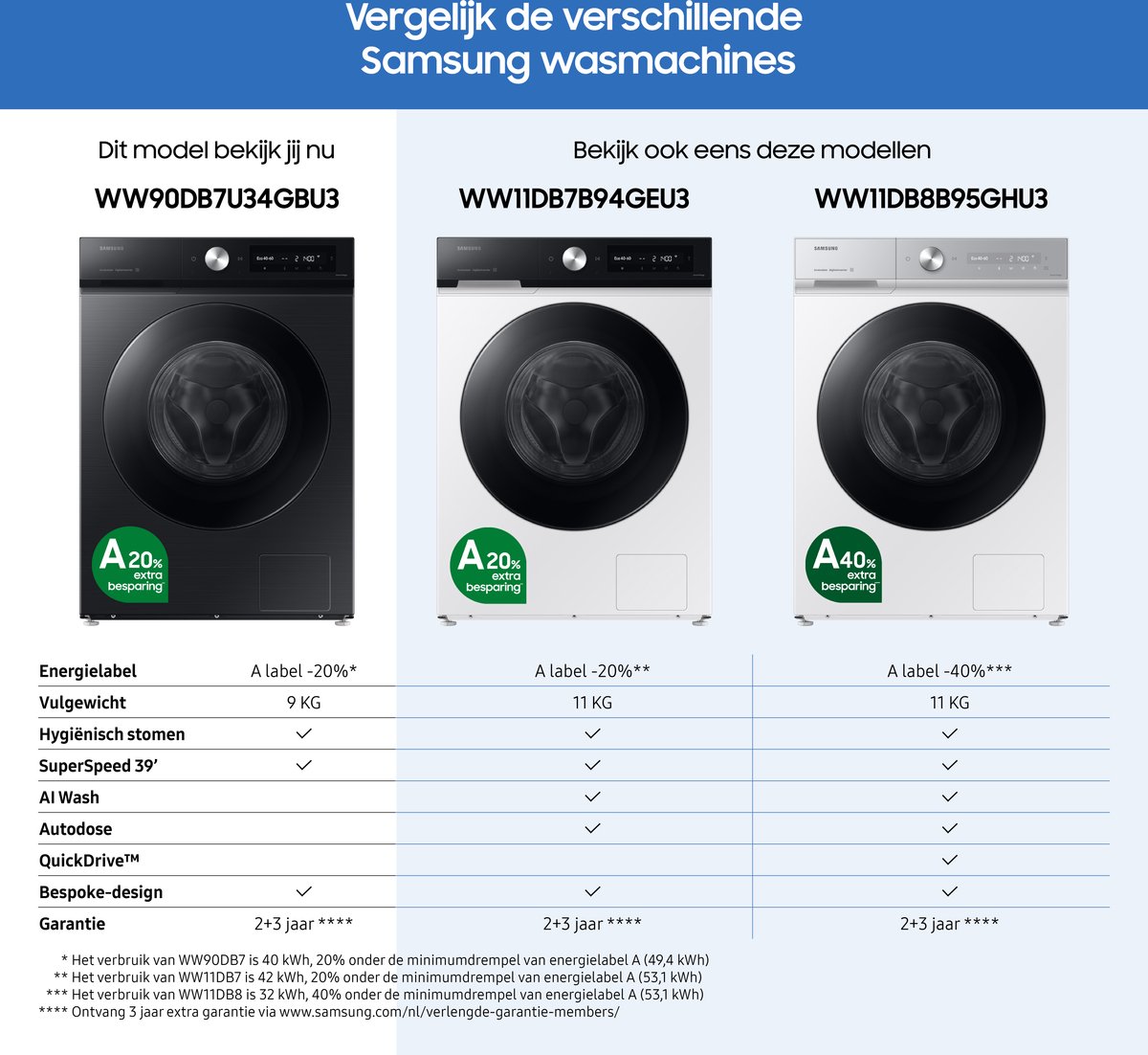 Samsung Bespoke WW90DB7U34GBU3 test: 20% zuiniger, energiezuinig