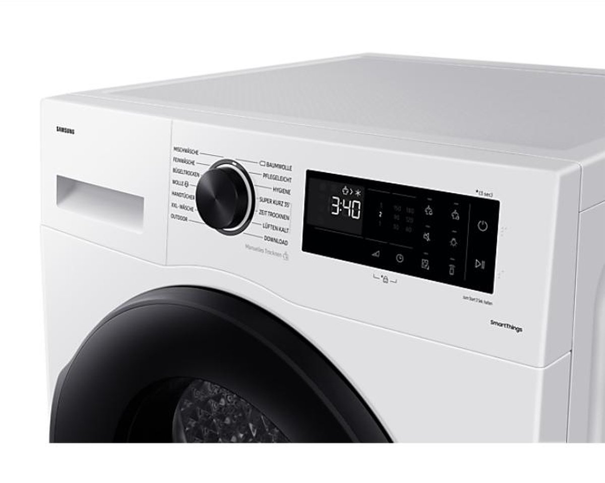 Zoek je een ruime, stille en overzichtelijke warmtepompdroger zonder extra complexiteit, dan is de Samsung DV90CGC2A0AEEG een nuchtere en sterke kandidaat. Hij biedt 9 kg vulgewicht, 65 dB geluidsniveau en compacte buitenmaten, met de bewezen zuinigheid van warmtepompdrogen. Weet je dat het scherm Duitstalig is en heb je geen behoefte aan telefoonbediening, dan koop je hier een praktische alleskunner die precies doet wat je verwacht: je was consequent en met beleid droog krijgen.