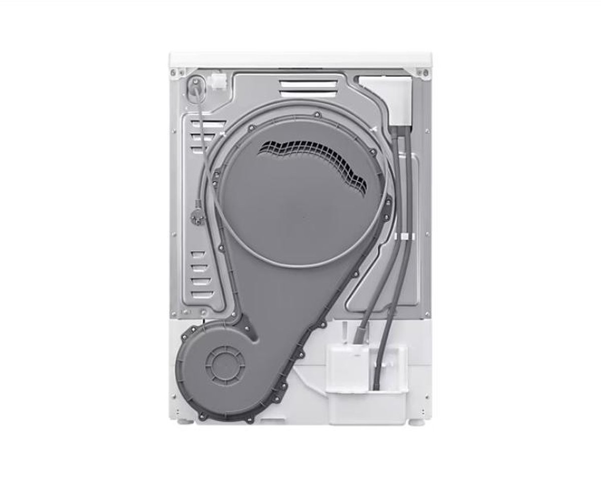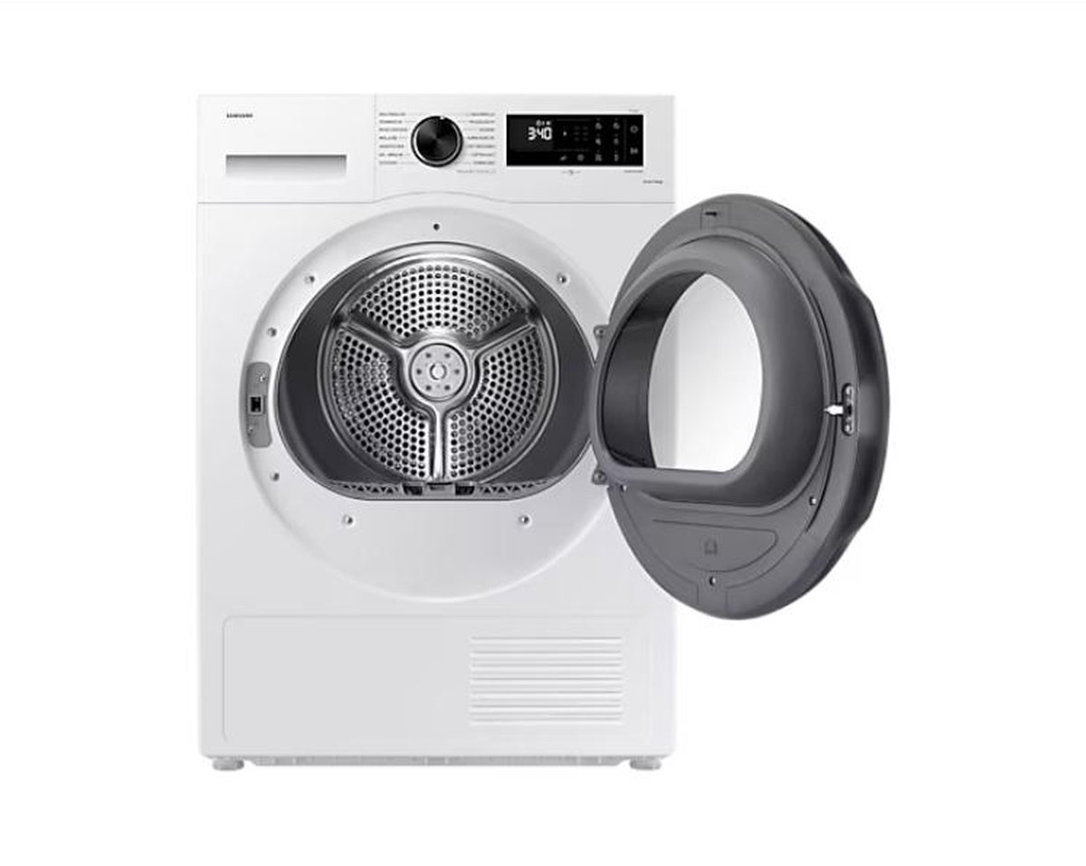 De Samsung DV90CGC2A0AEEG is een warmtepompdroger met 9 kg vulgewicht, gebouwd voor huishoudens die hun was efficiënt en met zorg willen drogen. Volgens de productvermelding draait hij met een geluidsniveau van 65 dB en werkt hij met condensatie-efficiëntieklasse B, zodat vocht uit de lucht goed wordt afgevoerd en je wasruimte comfortabel blijft. Met zijn compacte afmetingen van 85 × 60 × 60 cm en strakke witte afwerking past hij in veel nissen en bij diverse keukens en bijkeukens.