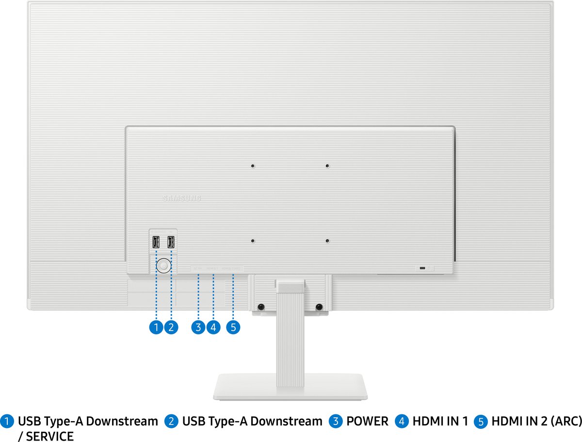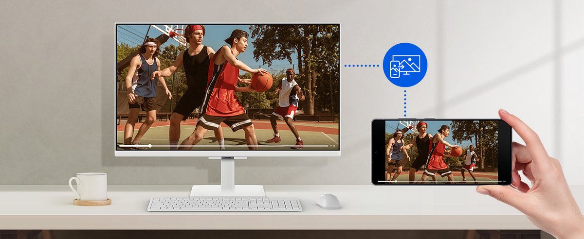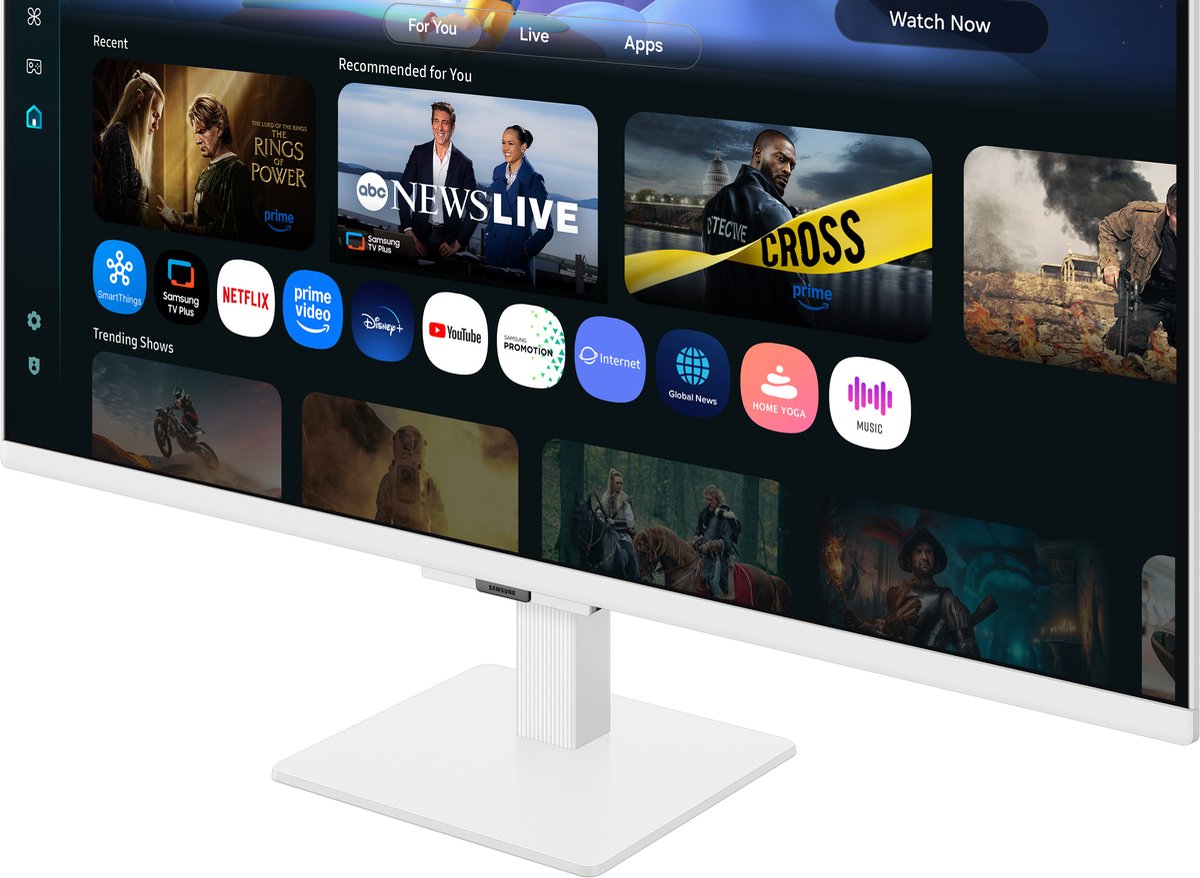 De Samsung Smart Monitor LS27FM501 is een 27 inch monitor die de functionaliteit van een pc-monitor, slimme tv en lichte productiviteitshub samenbrengt in één strak, wit design. Met Full HD-beeld, HDR10-ondersteuning, Tizen Smart Hub en draadloze opties zoals AirPlay 2 en schermspiegeling is hij ontworpen voor thuiswerken, streamen en casual gamen zonder extra kastjes op je bureau.