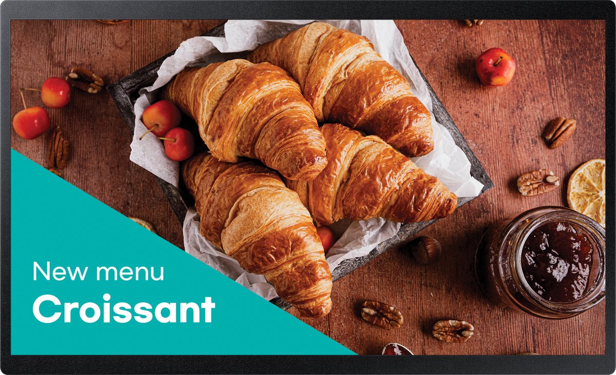 - Dag- en weekplanning: plan wanneer bepaalde boodschappen in beeld komen (bijv. ochtendmenu’s, middagacties, sluitingstijden).