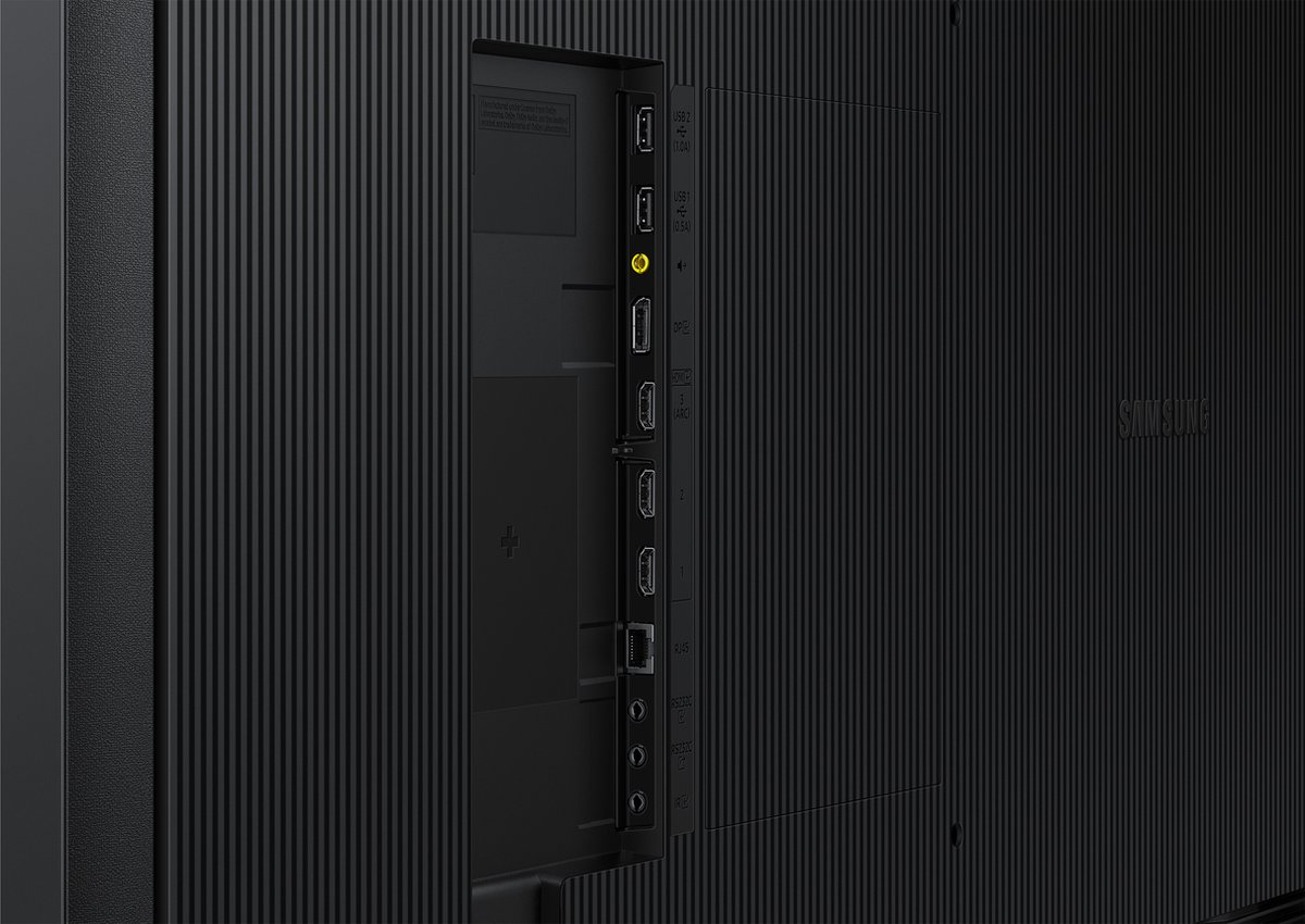 De Samsung QMC heeft 3x HDMI 2.0, 1x DisplayPort, 2x USB, Ethernet (RJ‑45), wifi en Bluetooth, plus RS‑232 en een IR‑invoer (bron: listing, gecontroleerd 2025). Dat betekent flexibiliteit bij integratie in bestaande infrastructuur. HDMI 2.0 ondersteunt 4K‑signaal tot 60 Hz, wat zorgt voor vloeiende weergave van video en animaties. DisplayPort is prettig voor professionele spelers of daisy‑chain scenario’s (afhankelijk van bron en configuratie). USB‑poorten maken lokale media‑weergave mogelijk, terwijl LAN en wifi verbinding geven voor beheer en content‑updates. Bluetooth kan nuttig zijn voor specifieke randapparatuur.