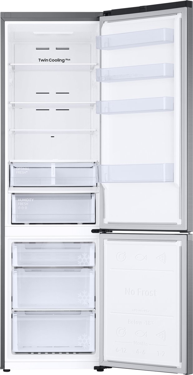 De RB38C607AS9 gebruikt Twin Cooling Plus: afzonderlijke koelsystemen voor koel- en vriesgedeelte. De voordelen merk je meteen: