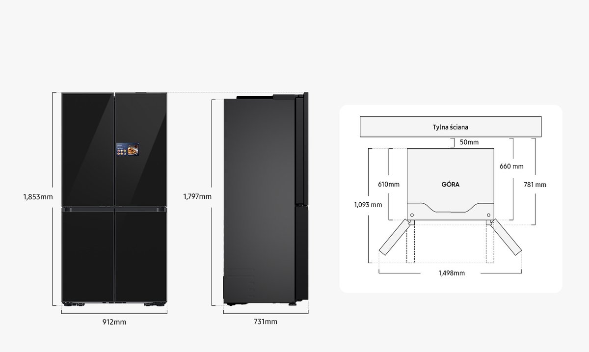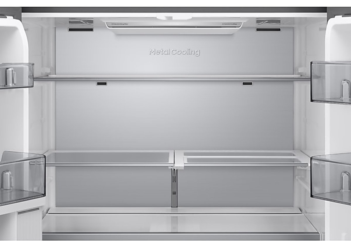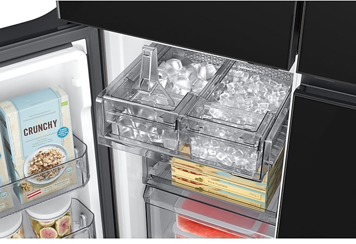 Auto Open Door heeft een merkbaar effect op gebruiksgemak. Je hoeft niet te trekken of duwen, maar tikt de deur aan en je hebt toegang. Combineer dat met het AI Home smart display: recepten of boodschappenlijstjes zichtbaar maken, een timer starten, of je smart lampen bedienen terwijl je kookt. Bixby voegt handsfree bedienen toe als je handen niet vrij zijn.