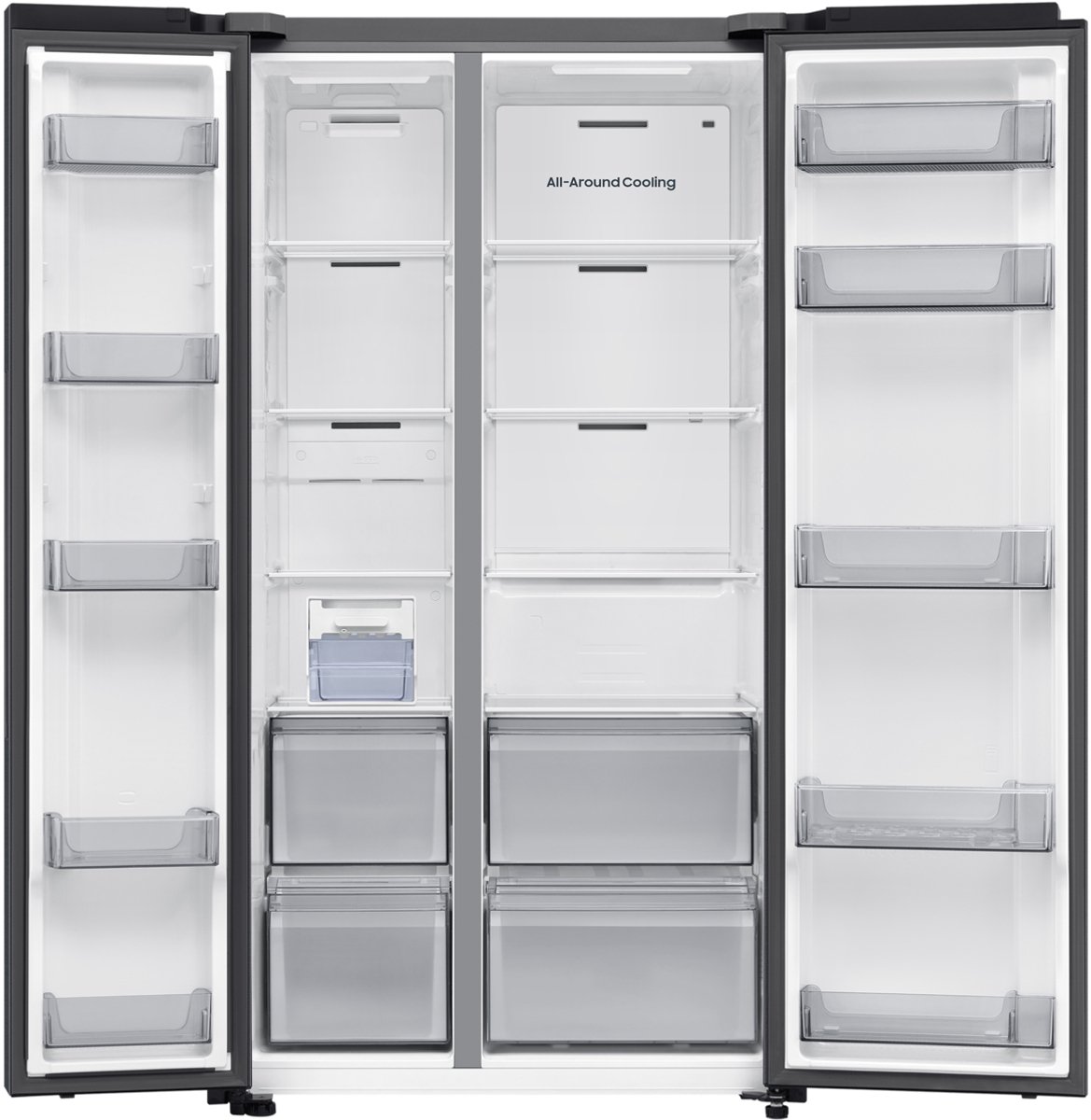 De Samsung RS70F65QEF/EF is een Amerikaanse koelkast uit de 7 Serie met veel binnenruimte, slimme functies via SmartThings en doordachte koeltechnologie. Het is een stijlvolle side-by-side met functies als SpaceMax, No Frost, All Around Cooling, Power Freeze/Power Cool en een Digital Inverter-compressor met 20 jaar garantie. Het resultaat: veel inhoud, gelijkmatige koeling en minder omkijken naar onderhoud.