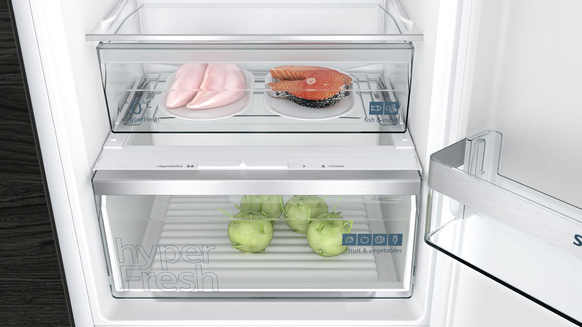 De hyperFresh-oplossing van Siemens is gericht op het langer vers houden van je etenswaren. In de praktijk merk je dat direct bij gevoelige producten zoals groente, fruit, vleeswaren en kaas. Door de juiste koeling en luchtcirculatie blijven textuur en smaak beter behouden, waardoor je minder hoeft weg te gooien en flexibeler kunt plannen met je weekboodschappen. Handig voor wie één of twee keer per week groot inkoopt of houdt van mealpreppen. (bron: listing, geraadpleegd 2025)