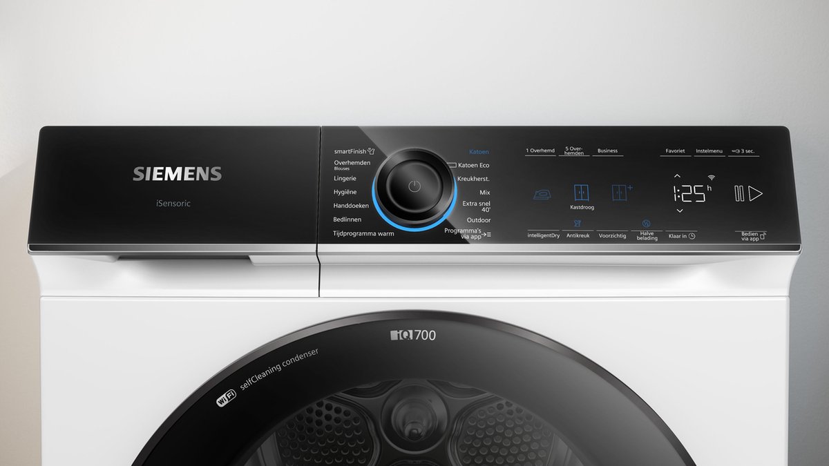intelligentDry laat je Siemens wasmachine gegevens doorsturen naar de droger via Home Connect: denk aan beladingsgrootte, soort textiel en restvocht. De droger stemt daarop automatisch zijn programma af. In de praktijk betekent dit minder kans op te lang drogen, minder krimp en vaak kortere looptijden dan wanneer je “blind” een programma kiest. Het is vooral handig als je vaak afwisselt tussen katoen, synthetica en gemengd wasgoed; de afstemming voorkomt veel giswerk.