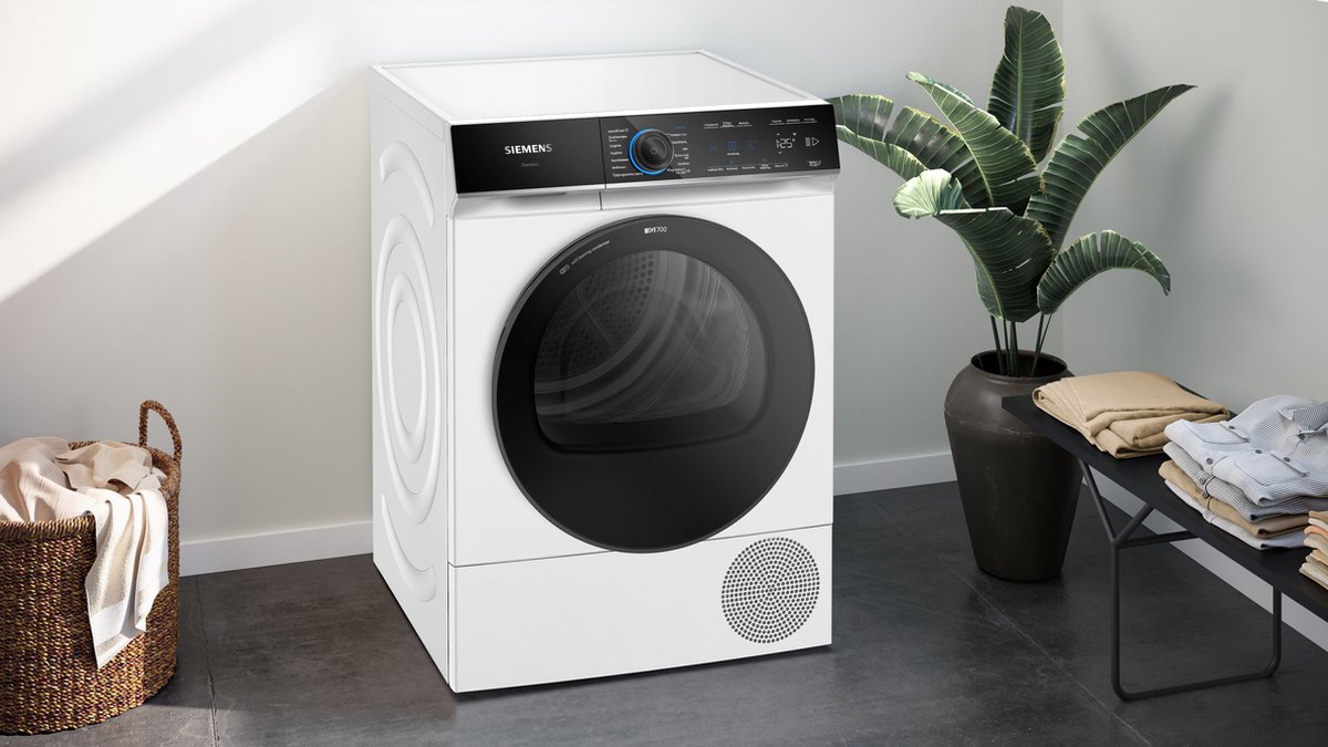 De Siemens iQ700 WQ45B2A5NL is een 9 kg warmtepompdroger voor energiezuinig, zorgeloos drogen in Nederlandse huishoudens. Dankzij slimme programma’s die kreukels verminderen en bediening op afstand past hij zich moeiteloos aan jouw dag aan.