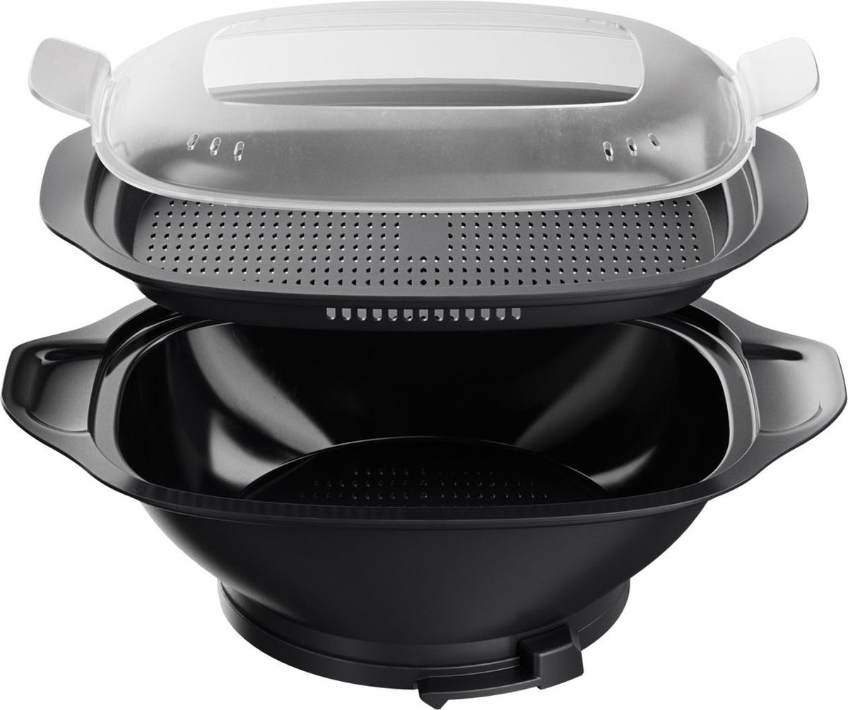 - Stomen in lagen: combineer de kom voor een saus met het stoomopzetstuk voor groenten of vis. Gebruik het inzetstuk voor delicate bereidingen. Stel tijd en temperatuur af op het dikste ingrediënt en check halverwege.