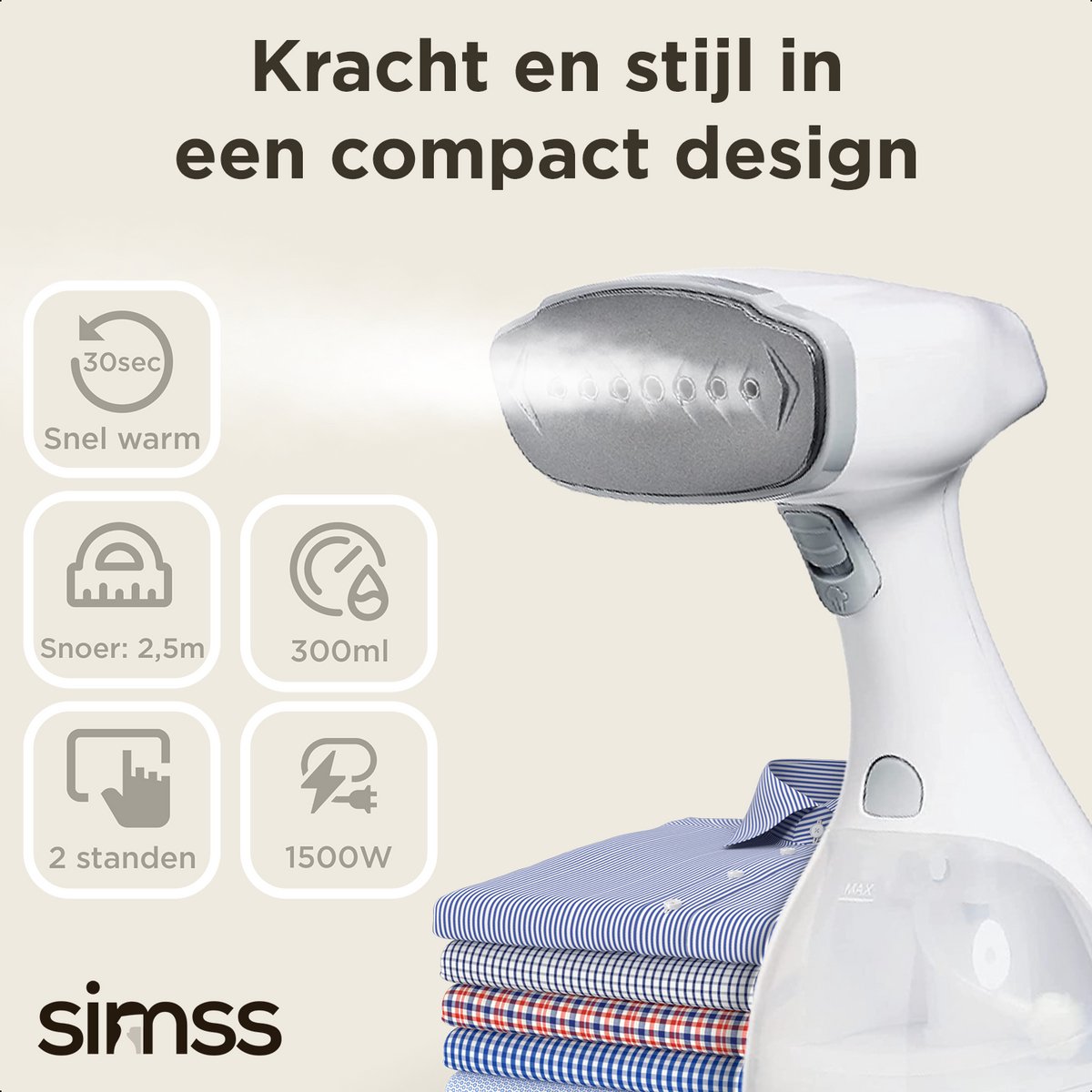 De Simss Kledingstomer is een krachtige, compacte stomer voor snelle, kreukvrije outfits. Ideaal voor drukke Nederlanders: klaar voor gebruik in 30 seconden. Met een 300 ml reservoir stoom je meerdere kledingstukken achter elkaar.