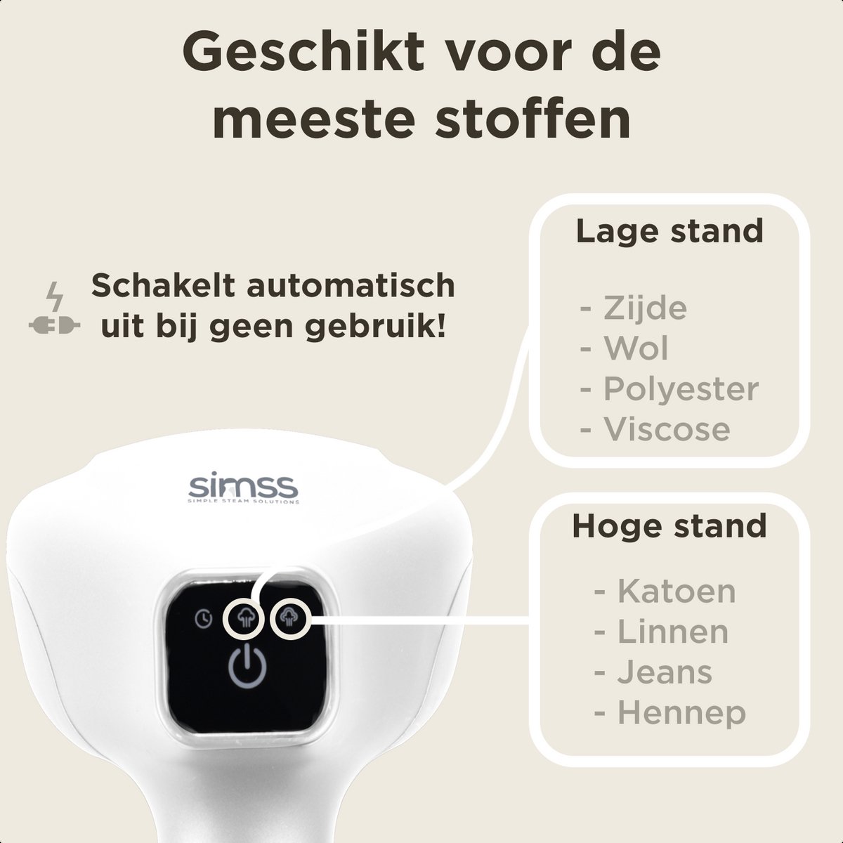 Niet elk textiel kan dezelfde hitte en vochtigheid aan. De Simss Kledingstomer biedt een lage en hoge stand.
