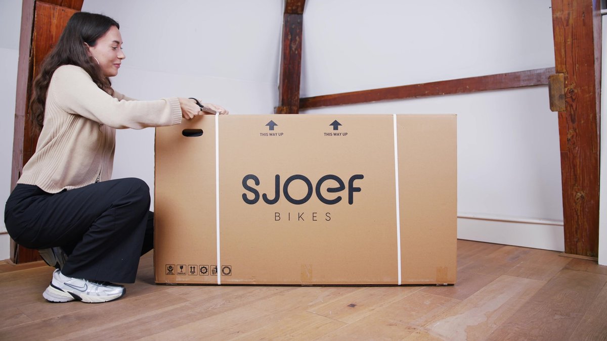 De fiets komt goed ingepakt binnen. Goed nagedacht over bescherming van frame en wielen. Karton om frame te beschermen is vastgezet met schilderstape. Daar is over nagedacht. Dit is makkelijker los te maken dan plastic tape.