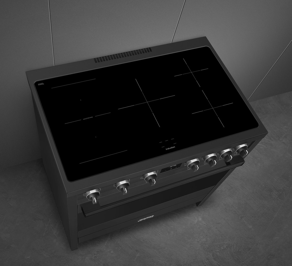 Het SMEG B95IMAN9 inductiefornuis is een 90 cm breed fornuis met vijf kookzones en een oven met meerdere functies, verpakt in een opvallende antraciete afwerking. Het is ontworpen voor thuiskoks die moderne technologie, snelheid en precisie willen combineren met een strakke uitstraling die bij een hoogwaardige keuken hoort.