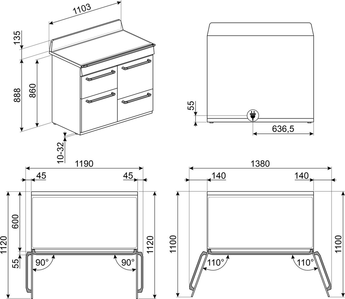 Specificaties: SMEG TR4110IBL2 – Inductie fornuis – 110 cm – Zwart test vermogen