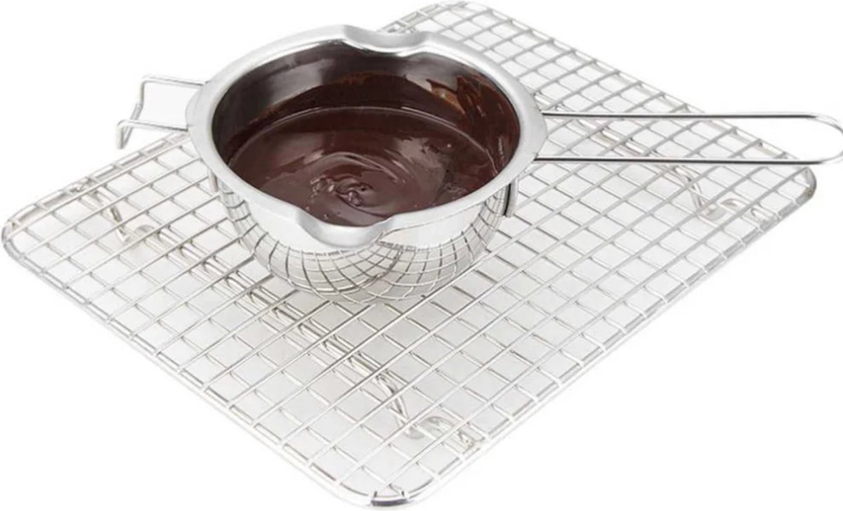 De productnaam geeft expliciet aan dat de pan bedoeld is voor chocolade: een goede eigenschap als je veel met cacaomassa of blokchocolade werkt. Een smeltpan beperkt direct contact tussen water en chocolade, mits je hem correct gebruikt — essentieel om klontvorming en ‘grijpen’ te voorkomen.