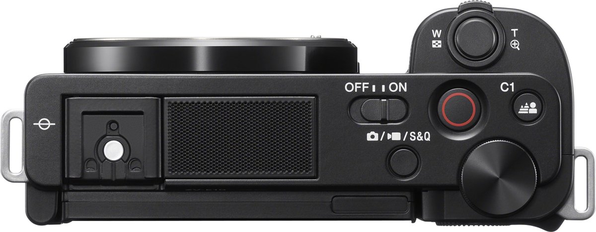 Het lcd-scherm is zijdelings kantelbaar en kan in meerdere hoeken worden gedraaid, ideaal voor selfies en opnamen van boven of onder. Bovenop zit een grote MOVIE-knop voor directe start/stop van video, en er is een Multi Interface-schoen om externe microfoons of accessoires aan te sluiten zonder extra kabels. De behuizing voelt degelijk en is ontworpen met ergonomie voor contentmakers in gedachten: knoppen zijn logisch geplaatst, en de zoomhendel voor powerzoom- of Clear Image-zoom maakt vloeiende zooms mogelijk.