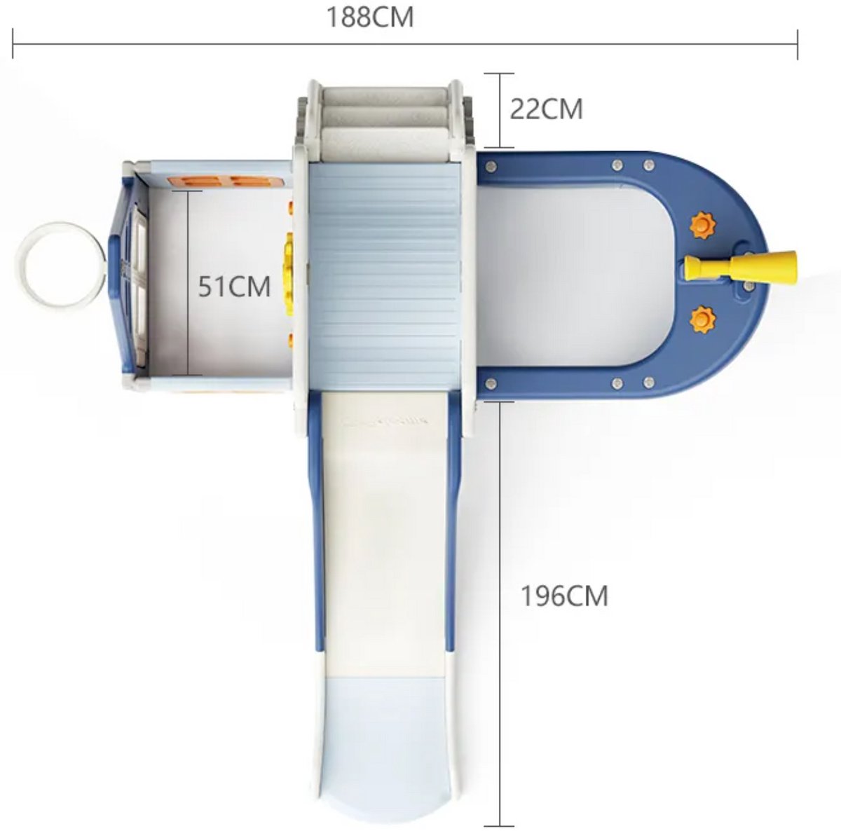 De glijbaan is 116 cm lang, een comfortabele lengte voor jonge kinderen om veilig snelheid te ervaren zonder te hoog of te snel te worden (bron: listing, checked 2025). In de praktijk betekent dit dat peuters hun eerste glijervaring kunnen opdoen zonder grote angsten; ouders hoeven minder vaak in te grijpen omdat de snelheid lager is dan bij langere glijbanen. De glijbaan is ideaal voor korte, herhaalde speelmomenten en training van evenwicht en zelfvertrouwen.