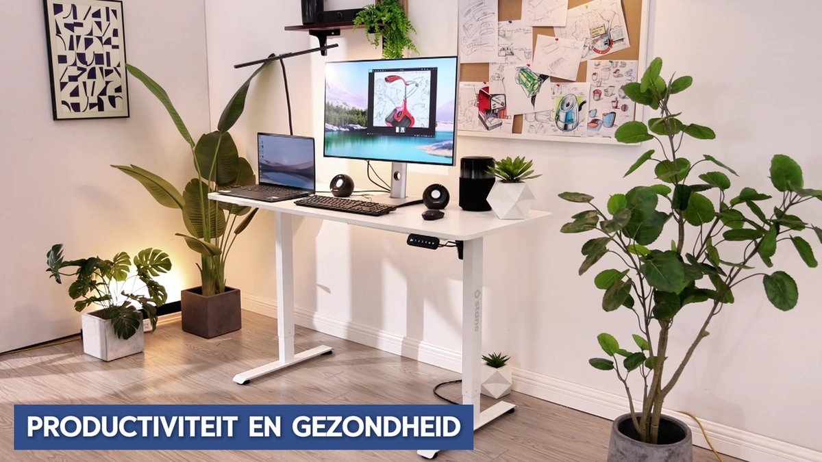 Dit elektrisch zit-sta bureau is een verstelbaar werkmeubel dat met één druk op de knop wisselen tussen zitten en staan mogelijk maakt. Het richt zich op thuiswerkers, kantoormedewerkers en iedereen die langdurig achter een scherm werkt en gezondheidsklachten wil beperken.