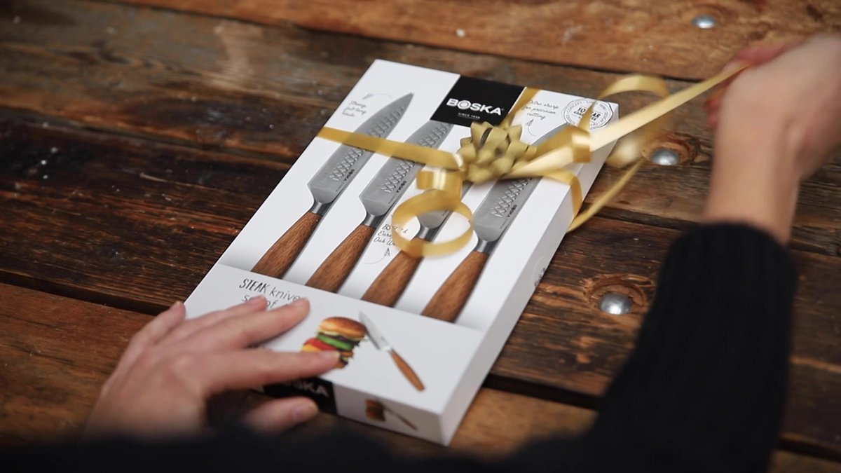 De Steakmessen Oslo+ van BOSKA zijn een set van vier gladde, extra scherpe steakmessen bedoeld voor gebruik aan tafel en in de keuken. Ze combineren een hoogwaardig roestvrijstalen lemmet met een ergonomisch handvat van hout en een non-stick afwerking die volgens de fabrikant levenslang zou meegaan. (source: listing, checked 2025)