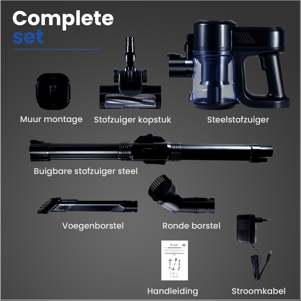 Specificaties: Steelstofzuiger Draadloos – van Saaf review: 22kPa zuigkracht