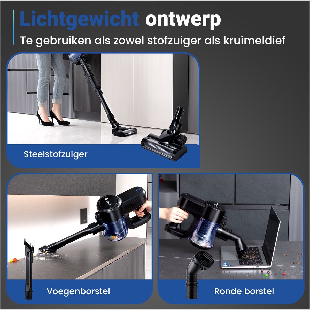 | Producttype | steelstofzuiger – steelstofzuiger draadloos – steelstofzuigers – stofzuiger draadloos – stofzuiger zonder zak – draadloze stofzuiger – handstofzuiger – kruimeldief – steelstofzuiger zonder zak op accu – stofzuiger |