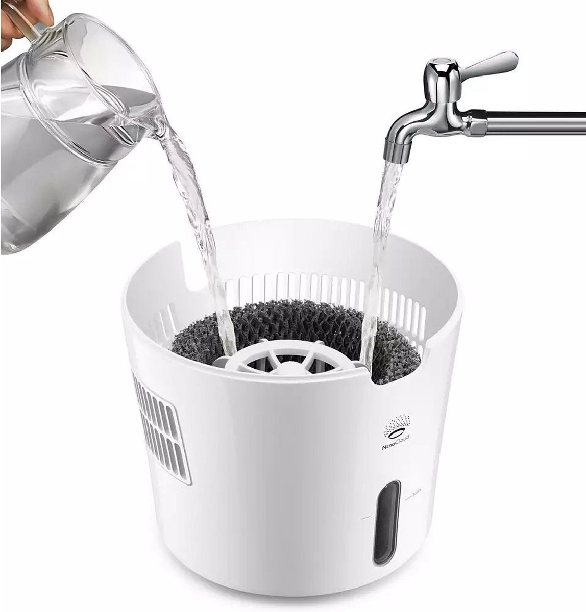 Door het 360°-design en het verdampingsprinciepe ontstaan er geen natte plekken op meubels of vloeren en zou er geen wit stof (mineralenafzetting) op oppervlakken blijven liggen. Dit is praktisch wanneer je de bevochtiger in een woonkamer of naast elektronica gebruikt; je hoeft niet constant op waterdruppels of witte aanslag te letten.