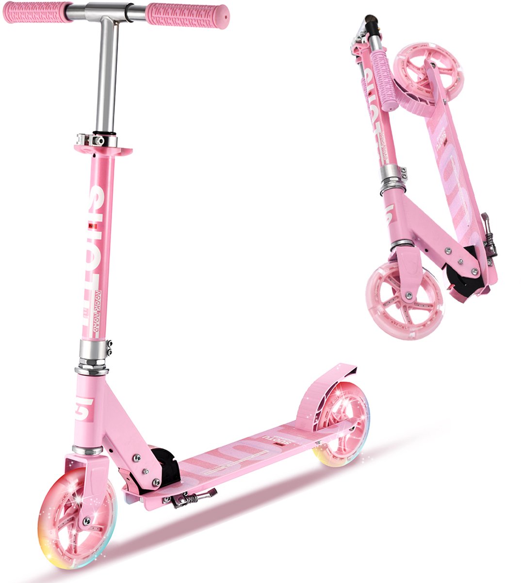 De Suotu kinderscooter is een opvouwbare, tweewielige step speciaal ontwikkeld voor jonge rijders van ongeveer 3 tot 12 jaar. Hij combineert een lichtgewicht aluminium constructie met een laag-to-ground dek, verstelbaar stuur en kleurrijke wielen die oplichten zonder batterijen. De step is bedoeld voor dagelijks speelgebruik, korte ritjes naar school of het oefenen van balans en coördinatie.