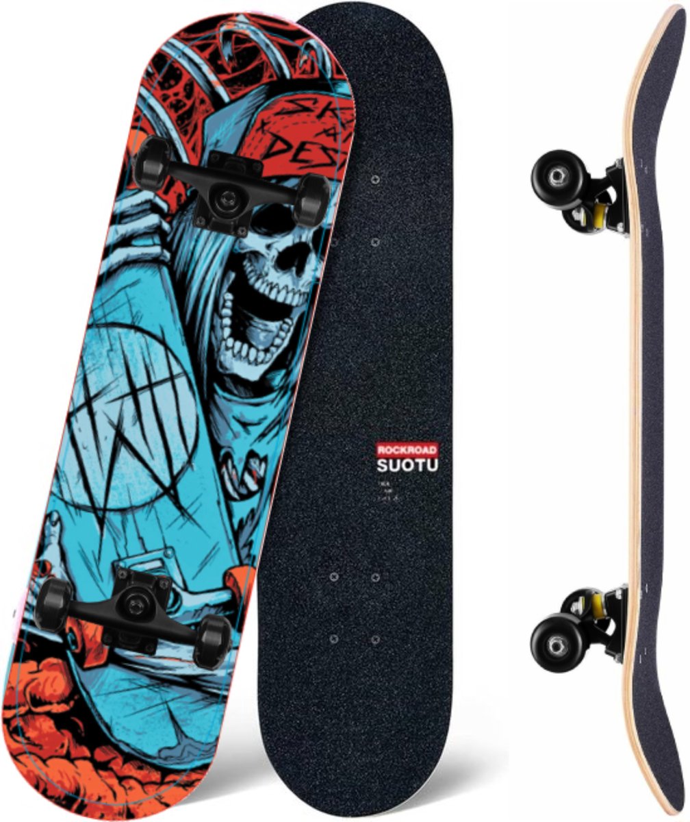 - Volledig gemonteerd skateboard (dek, trucks, wielen, lagers, grip tape) (source: listing, checked 2025)