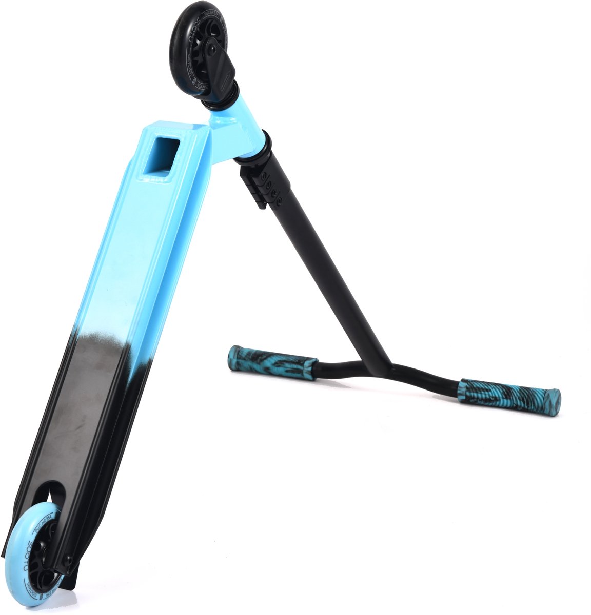 Ergonomie: het antislip loopvlak en geribbelde rubberen handvatten zorgen voor grip tijdens stunts. De T-bar biedt voldoende controle voor draai- en trikebewegingen, vooral voor beginners en intermediates.