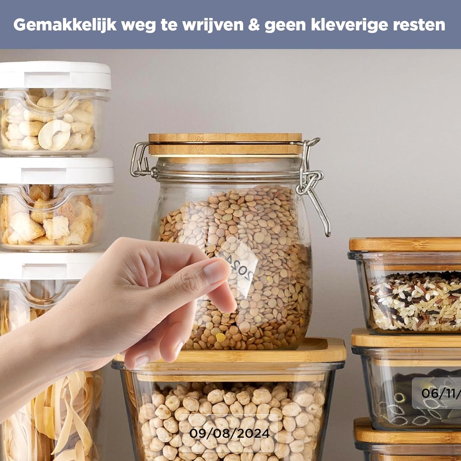De etiketten hebben een multi-layer synthetische opbouw, waardoor ze water- en oliebestendig zijn en beter omgaan met temperatuurschommelingen dan gewone papieren labels. Dit levert praktisch voordeel wanneer je etiketten nodig hebt die buiten of in vochtige omgevingen blijven zitten — bijvoorbeeld op voorraadbakken in de kelder, flesjes in de keuken of voor producten die in koelopslag worden bewaard. De fabrikant vermeldt een levensduur van meer dan 5 jaar, wat stabiliteit biedt voor langdurige labelingprojecten (bron: listing, gecontroleerd 2025).
