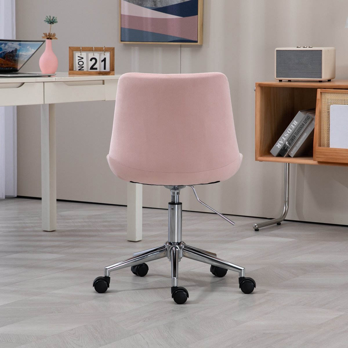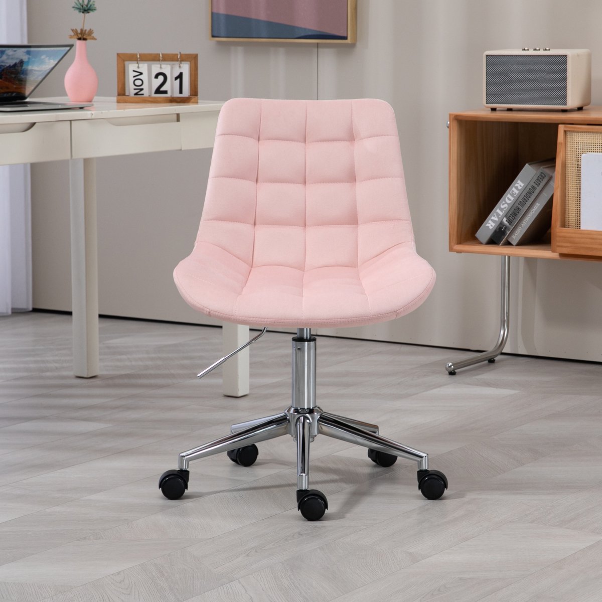 Opmerking: dit is een fluwelen bureaustoel bedoeld voor kinderen en adolescenten; volwassen gebruikers met andere ergonomische eisen kunnen een ander type stoel overwegen.