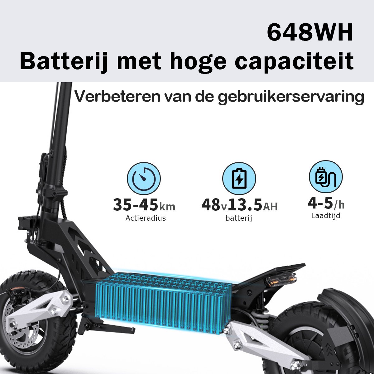 Overzicht:De OOTD T10 is een elegante, krachtige elektrische scooter die technologie en comfort combineert voor Nederlandse stadsritten en onverharde paden. Hij is uitgerust met een 48V 13.5Ah lithiumaccu voor betrouwbare dagelijkse actieradius.