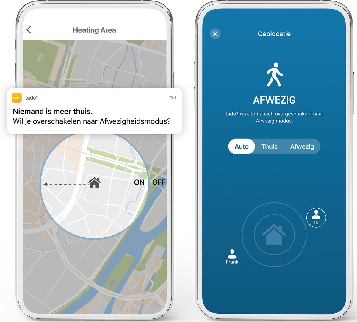 De app kan de verwarming aansturen op basis van de locatie van bewoners. Ben je weg, dan schakelt het systeem terug; ben je onderweg naar huis, dan wordt alvast opgewarmd. Dit voorkomt dat de verwarming onnodig lang blijft draaien bij afwezigheid, en zorgt tegelijk voor een warme thuiskomst zonder handmatig ingrijpen. Deze locatiegebaseerde sturing werkt het best wanneer alle huisgenoten de app gebruiken en toestemming geven voor locatiebeheer.