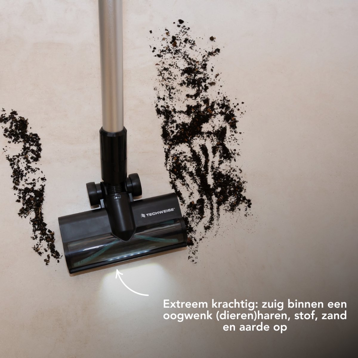 Als steelstofzuiger zonder snoer geeft deze Techweise je vrijheid. Geen gesjouw met een canister, geen kabel die achter een stoel blijft haken en geen gedoe met stopcontacten. Je pakt hem er even bij voor een ongelukje of je loopt in één sessie de hele benedenverdieping door.