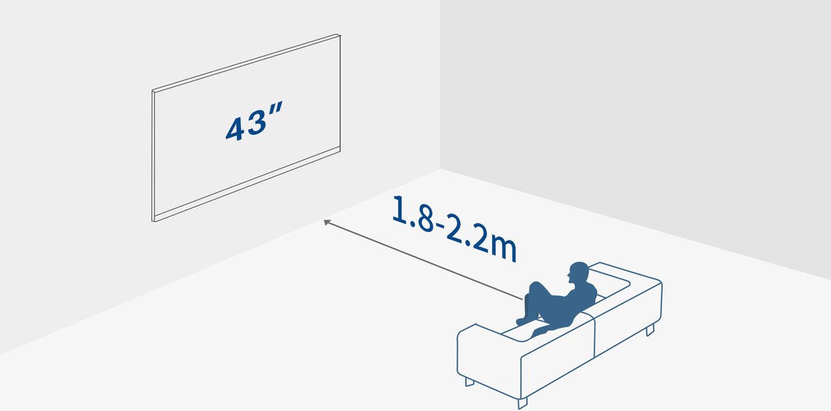 - Een moderne, bijna randloze 43 inch-tv wilt die past in een gemiddelde woonkamer of slaapkamer.