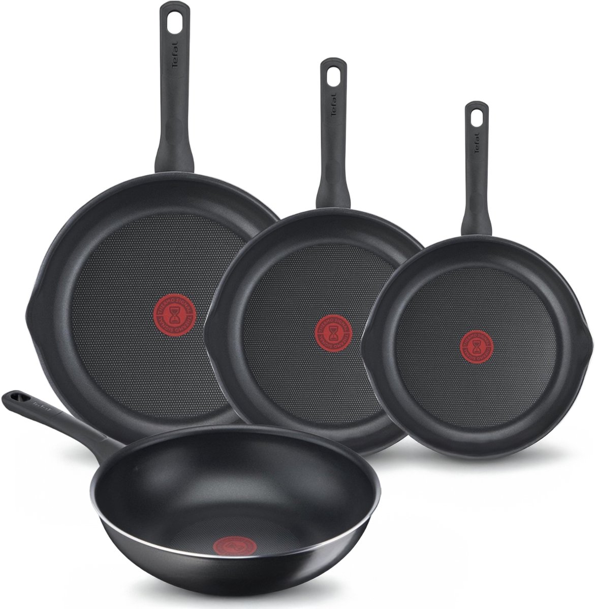 Overzicht:De Tefal Day by Day Pannenset is een complete 4-delige set voor Nederlandse thuiskoks die dagelijks snel en efficiënt willen koken. De set bevat koekenpannen Ø20/Ø24/Ø28 cm en een wok Ø28 cm, gemaakt van lichtgewicht aluminium met titanium-versterkte anti-aanbaklaag.