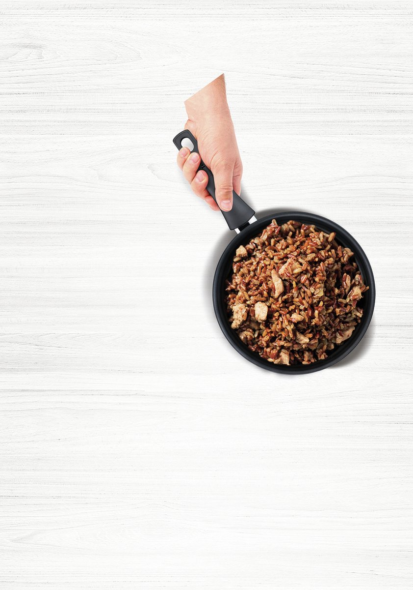 De combinatie van een lichte constructie en ergonomische handgreep maakt de pan prettig in balans. Je tilt, schudt en schenkt met minder inspanning. In drukke keukens of wanneer je meerdere gangen tegelijk bereidt, telt elk stukje gebruiksgemak. Ook voor wie minder polskracht heeft, is dit prettig: je houdt langer controle zonder vermoeiing.