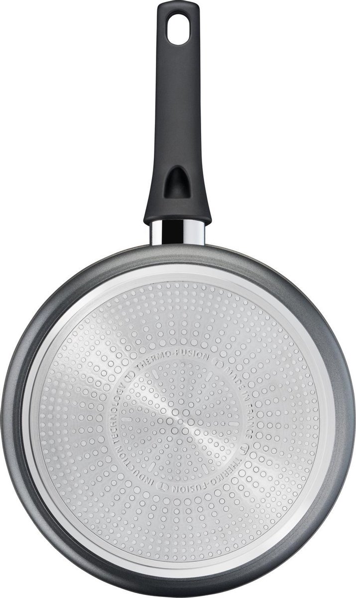 De pan heeft een bredere inductiebodem die de warmte efficiënt verspreidt. Dat biedt twee voordelen: