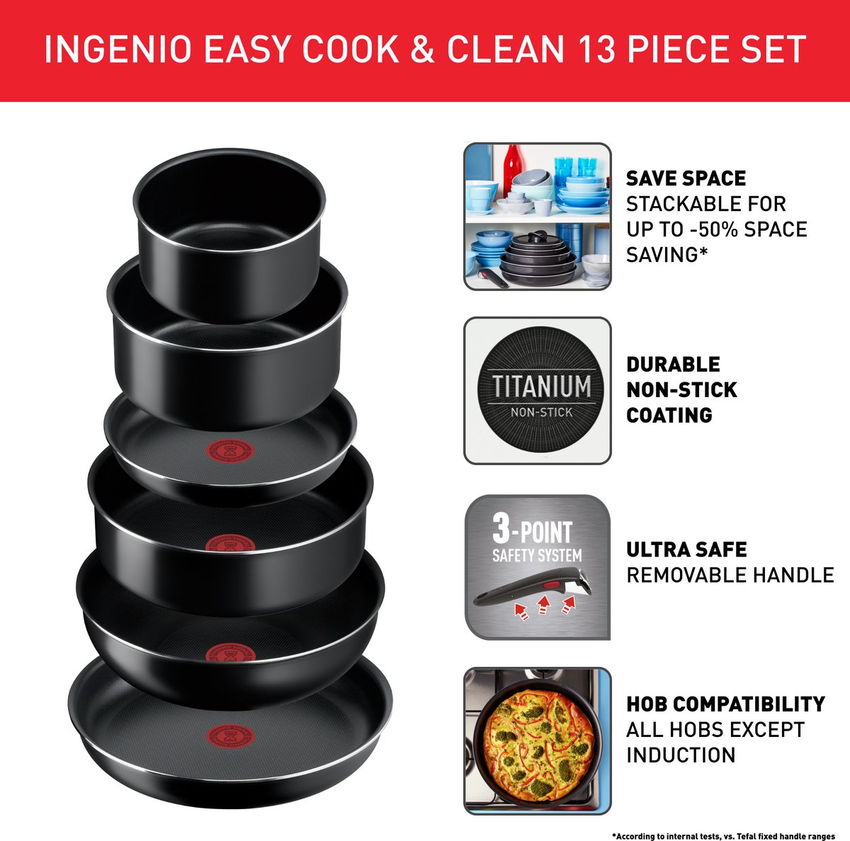 Overzicht:Tefal Ingenio vereenvoudigt koken thuis en bespaart dagelijks tijd en ruimte, ideaal voor Nederlandse keukens. De set is 13-delig.