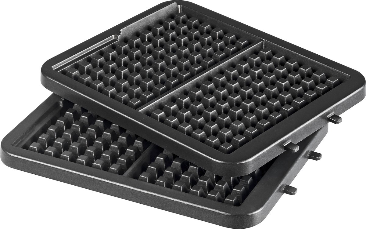 - Twee uitneembare wafelplaten met anti-aanbaklaag (10 x 16,5 cm volgens de fabrikant)